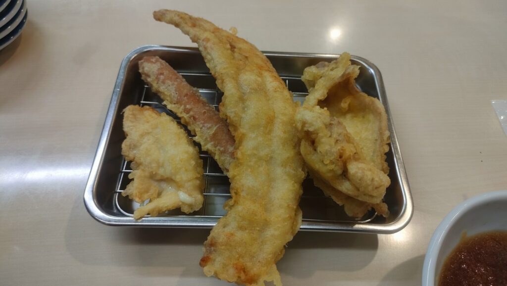 ウインナーの天ぷらは塩気が最高で、そとはカリッとあげてあり、ツユとウインナーの味を楽しめます。